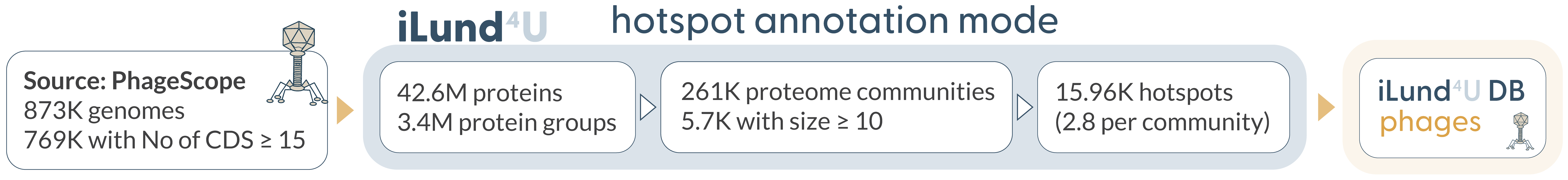 This iLund4u phage database provides an interactive platform to explore hotspot-encoded phage proteins annotated with iLund4u, using the complete PhageScope database of 873K phage genomes as input.